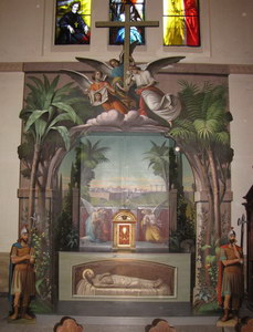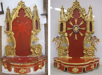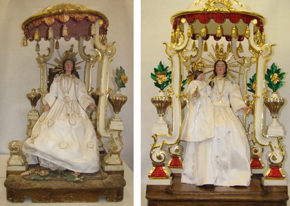restavriranje baldahina z oblečenima kipoma Marije in Jezuščka
